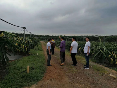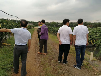 平田济董事长张永标陪同上海德瑞辉展进口水果公司老板参观火龙果基地