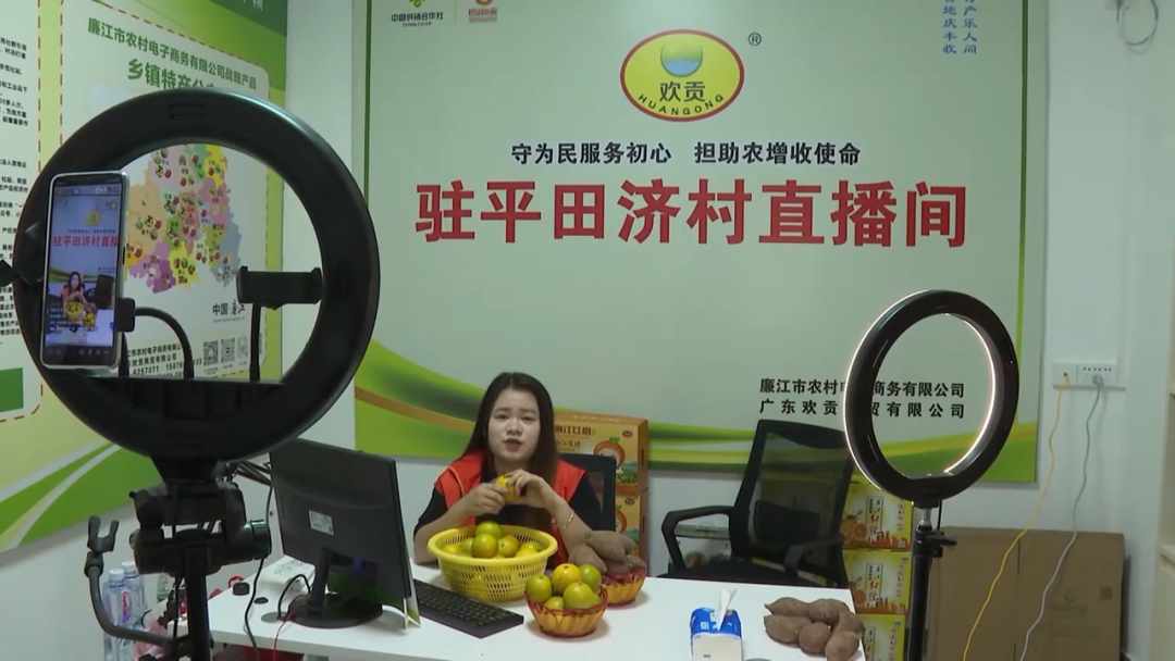 记者吴岱烨:过去农村青年人大都立志外出打工赚钱,现在建成乡村振兴示范带,在家门口就可以创业,精品村里年轻人用自己的青春热血书写新时代的人生。 记者在良垌镇乡村振兴示范带精品村平田济村发现,该村建成了示范带第一个电商平台,并已投入使用。近日来了一批年轻人,在7个直播间里,他们正利用网络平台开展直播带货活动,集中精力推销廉江的农副产品。 良垌镇丰业种植专业合作社张焕华:也是打工,出去有好多年了,外面的感觉不是很好,背井离乡一样。费用大,一年回不了几次家。因为家里有这个平台,可以值得我们青年在这里发展,是一个很好的机会。我的想法是这个机会搏一搏,闯出自己的一片天地。