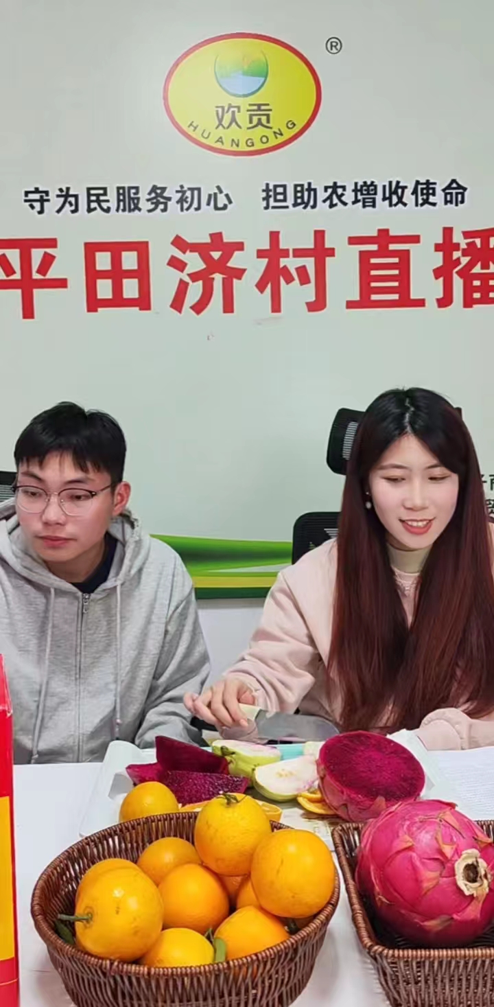 珠海科技学院红橙黄绿队在平田济电商中心进行助农直播