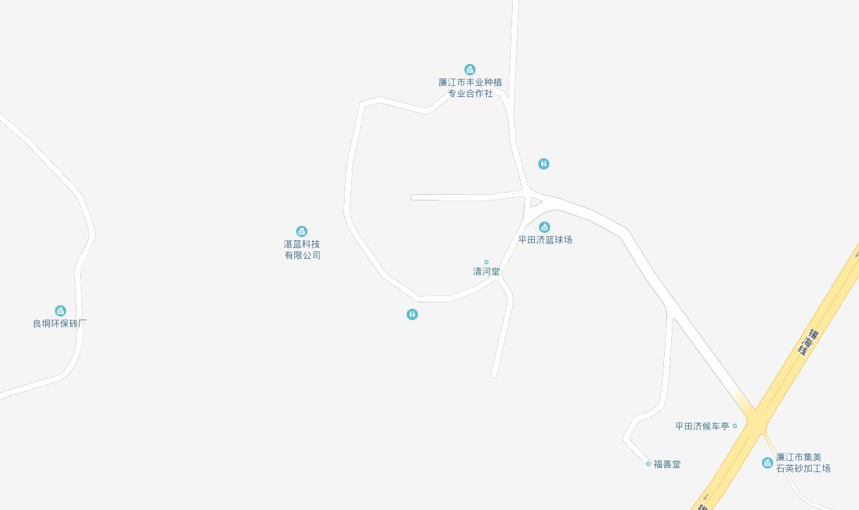 2019年伊始,平田济村在各大主流网络地图APP及网站上的地标收录越来越多,例如福善堂、清河堂、候车亭、廉江市丰业种植专业合作社、湛蓝科技有限公司(Lanisky湛江办事处)、篮球场、公共厕所皆被收录,主要在百度地图、高德地图、腾讯地图、微信、抖音等。这样的成绩在湛江地区农村中属于数一数二的情况。