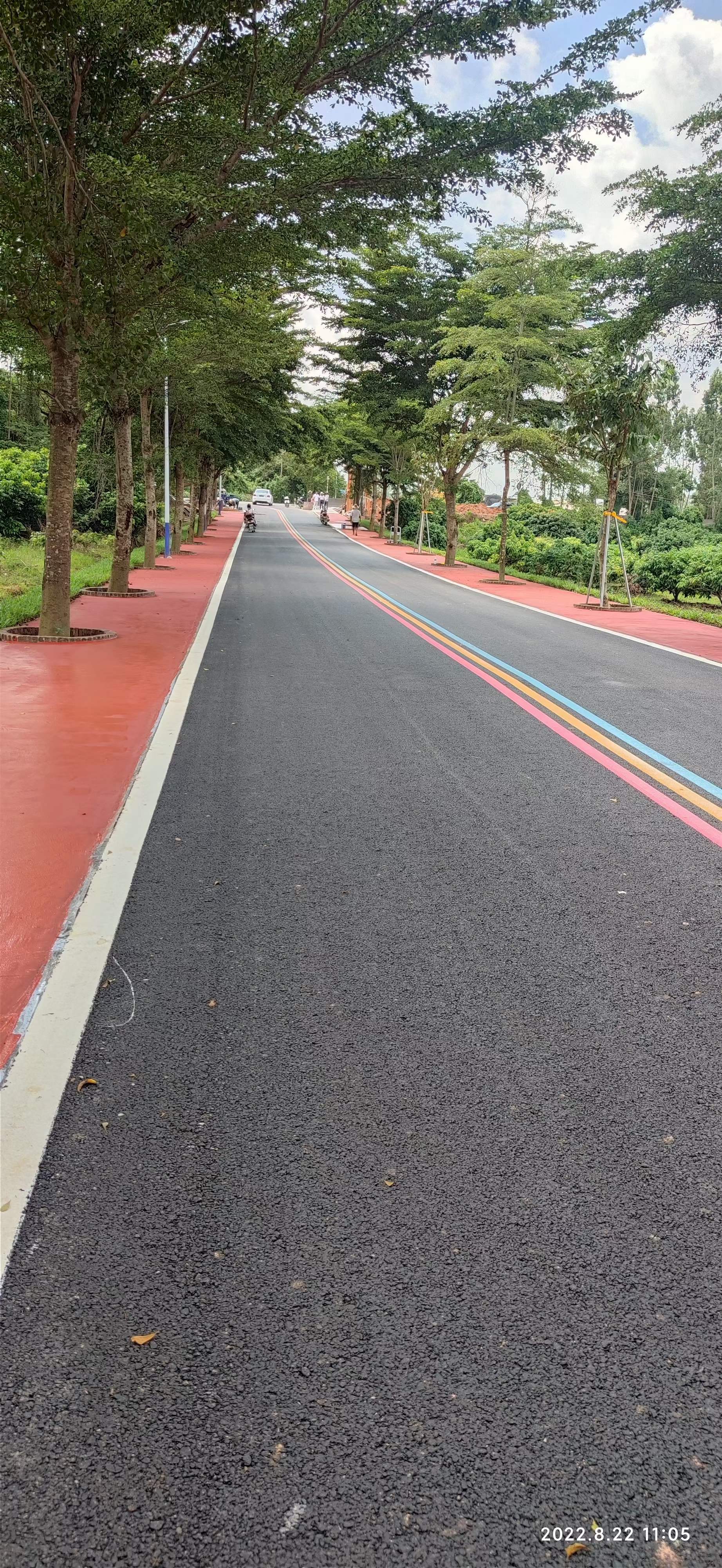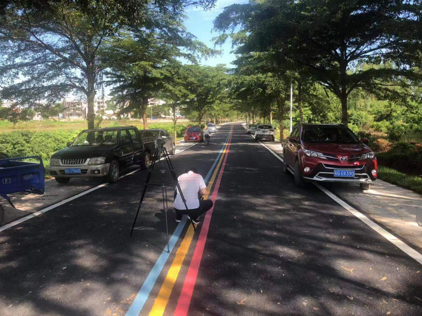 乡情大道变身「彩虹大道」,主干道乡情大道铺设高档柏油,加上三色彩虹点缀,为精品旅游示范村门面打造打卡热点